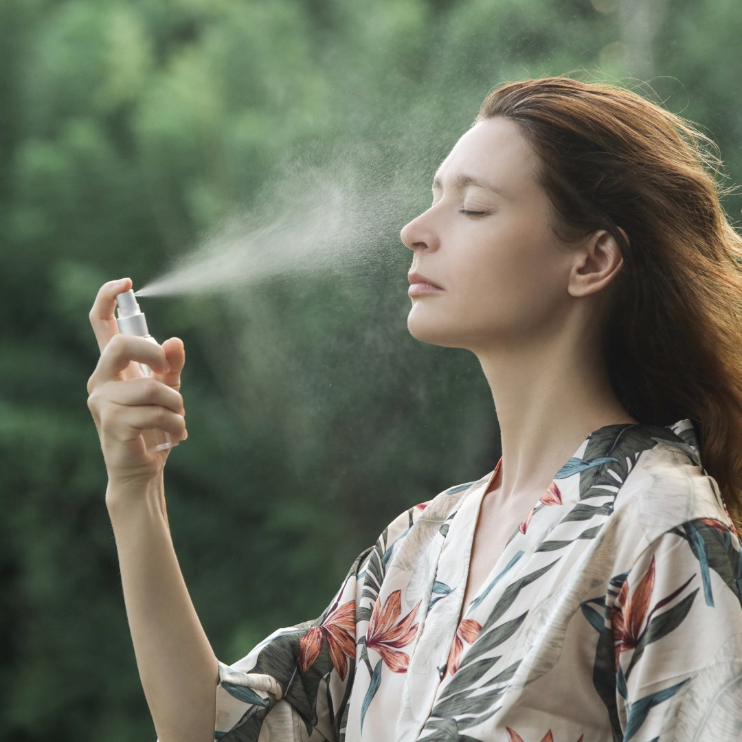 Everyday: Close your eyes and spray your face with HYDRATING SPRITZ; or spray 3 pumps into your palm and spread the liquid on your face with your hands. Allow your face to air dry—this gives your skin time to absorb nutrients. Focus on the cooling sensation on your skin.