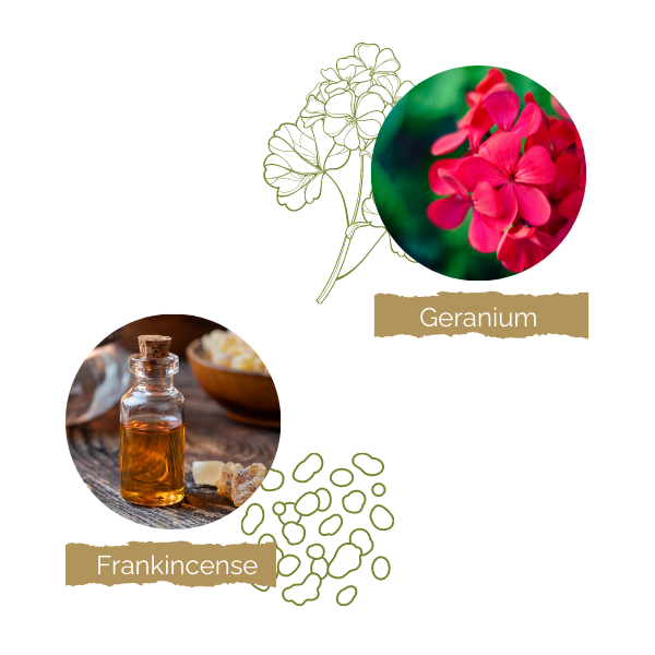 🌿 Geranium: Calms, protects, and emotionally heals. Opens heart chakra, fosters trust. Aids Focus, combats anxiety, boosts self-esteem.