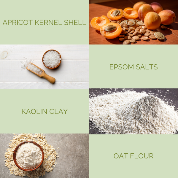 We use ground Apricot Kernel Shells in our Lavender Body Scrub. It doesn't dissolve in water which makes for a longer scrub. It is gentle yet provides deep-cleaning, renewing and detoxifying all skin types.