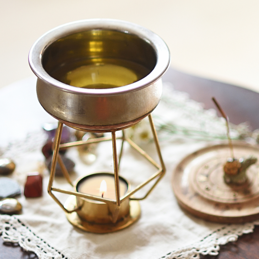 in a small bowl placed above a tea candle or in a bowl of boiling water