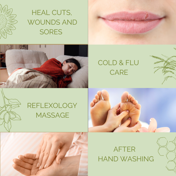 You love that its made from natural, non-toxic ingredients and powerful, healing Ayurvedic oils. Now Cold and Flu season passes with ease. Cold sores and cuts heal quickly; a little on your hands after handwashing keeps up your antibacterial protective barrier; and you've even started using it as a lip balm during cold season so that you can breathe easier.